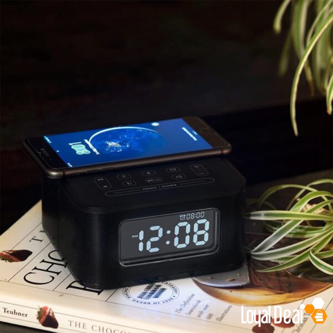 Homtime Alarm Clock with Bluetooth Speaker System and Wireless Charging Function HS1-PD – Black